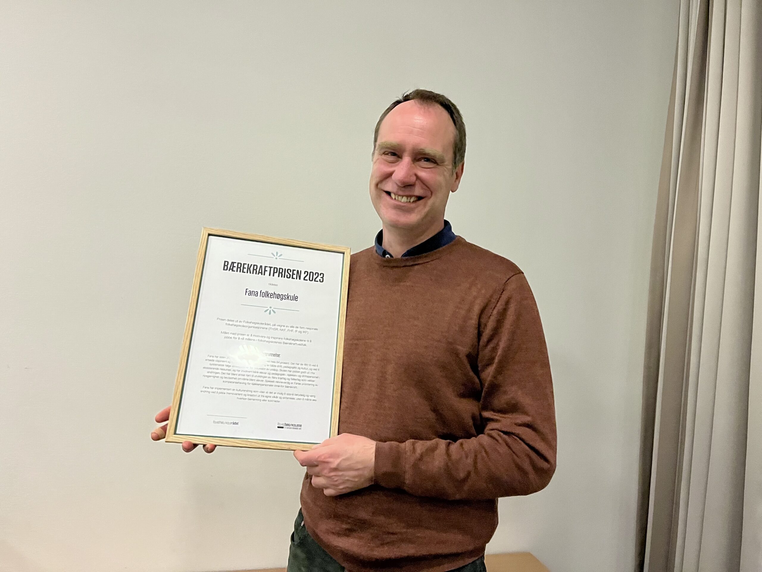 – For Fana folkehøgskole er prisen en solid anerkjennelse. Vi er veldig glade for å ha fått prisen, sier rektor Tore Haltli, ved Fana folkehøgskole.