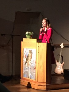 Så var det elevrådslederens tur og hun holdt en sterk tale. Salen jublet, men enkelte begynte å henge litt med hodet