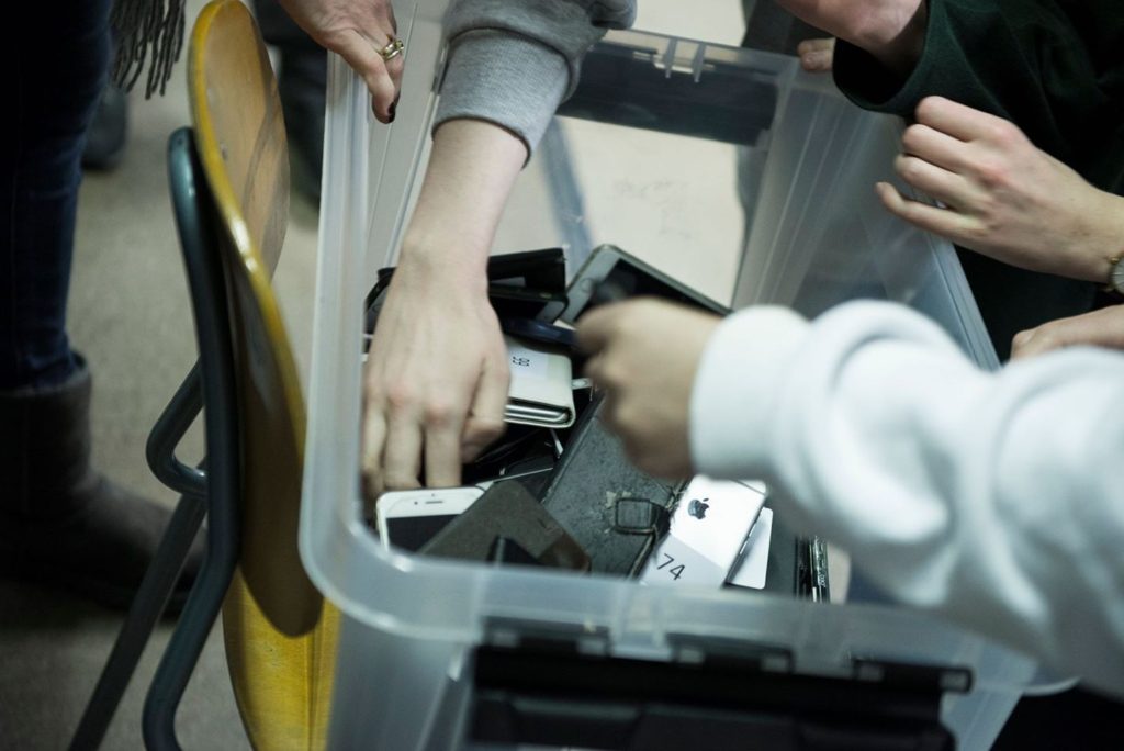 Elevene ved Elverum folkehøgskole måtte gi fra seg de kjære telefonene sine under eksperimentet. Foto: Elverum fhs.