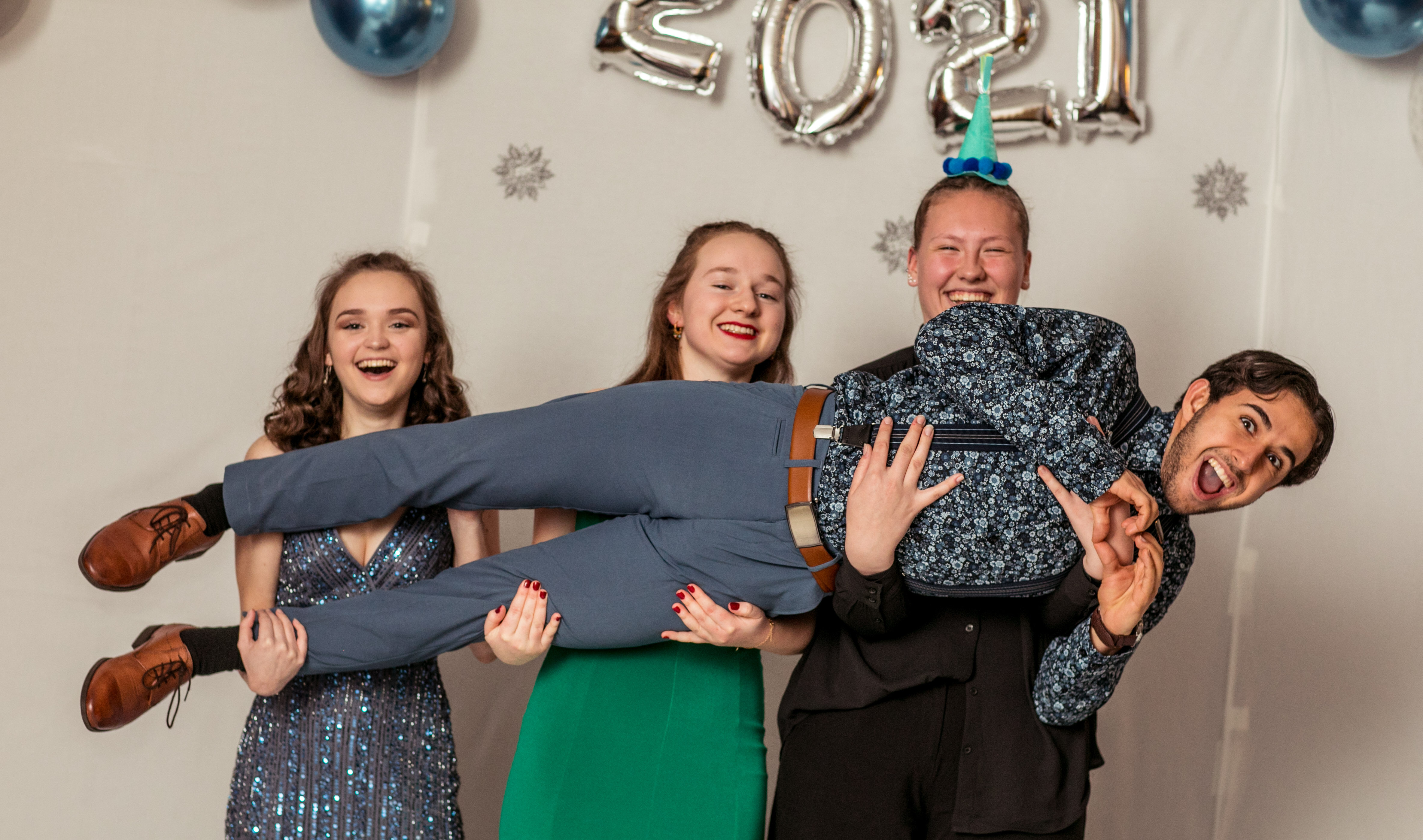 Fornøyde elever på juleball på Karmøy folkehøgskole. Foto: Torkild Groven
