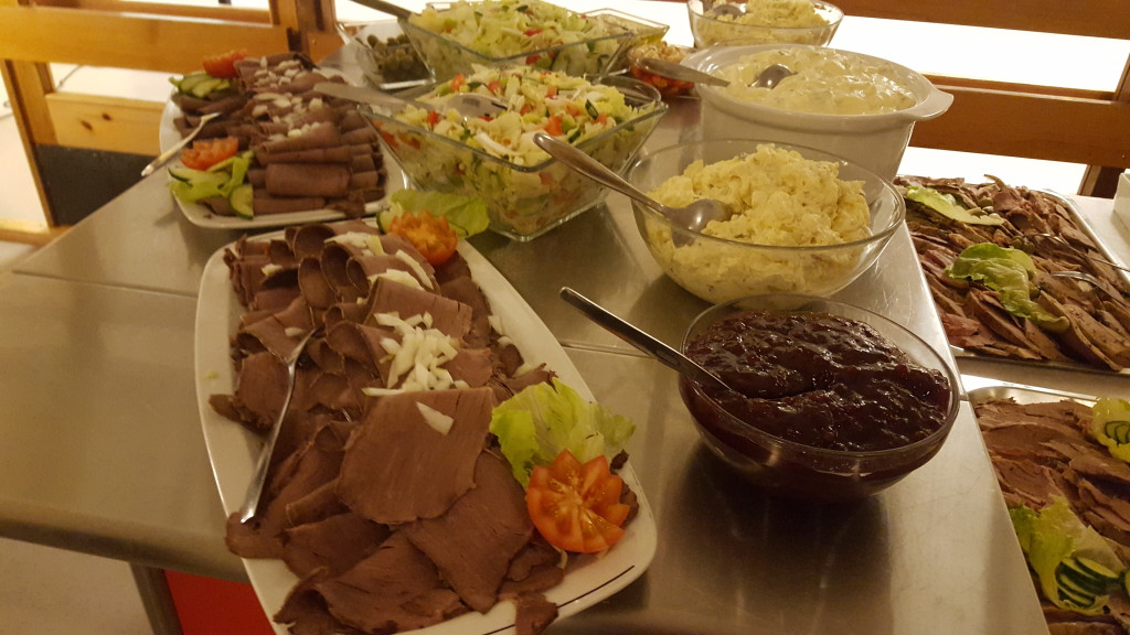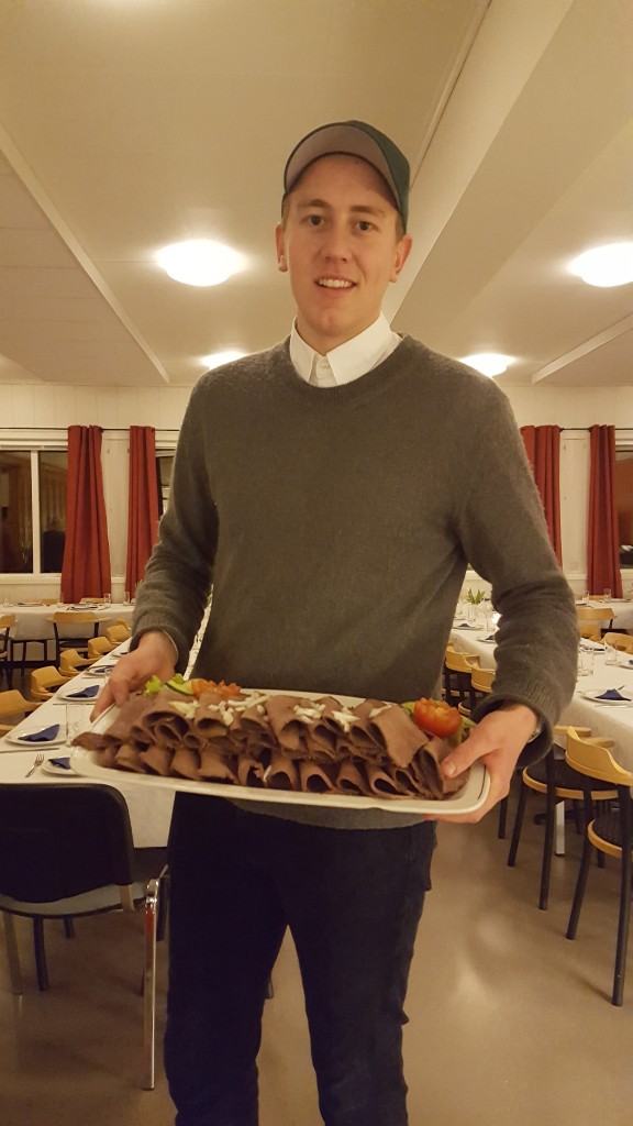 Kjøkkenpersonalet på Pasvik har hjulpet til å tilberede innholdsrikt koldtbord. Både kjøtt og fisk er det elevene selv som har fanget.