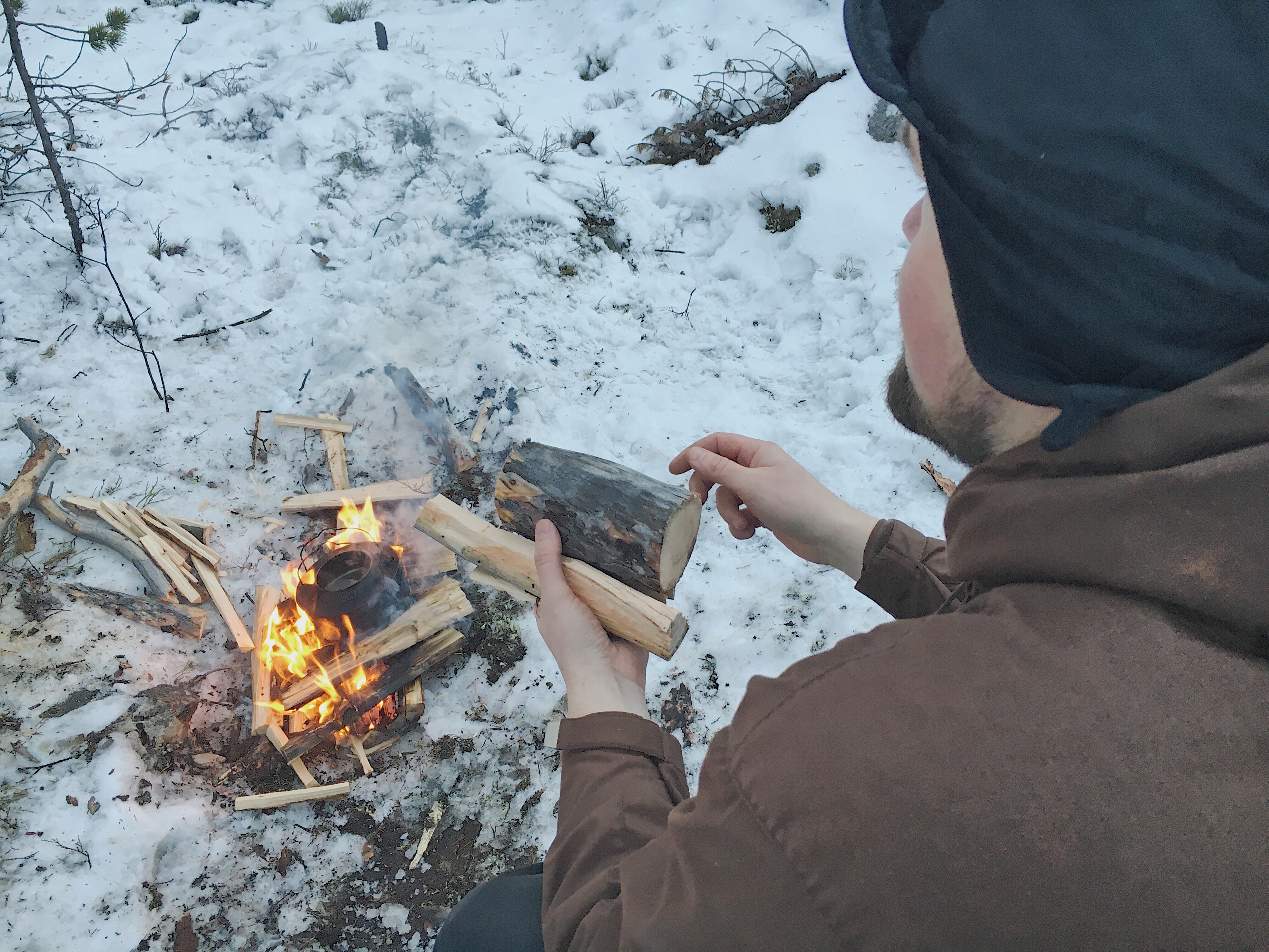 Når bålet tar fyr kan du legge på større kvister og kubber. Husk å følge med på bålet helt til det stabiliserer seg.