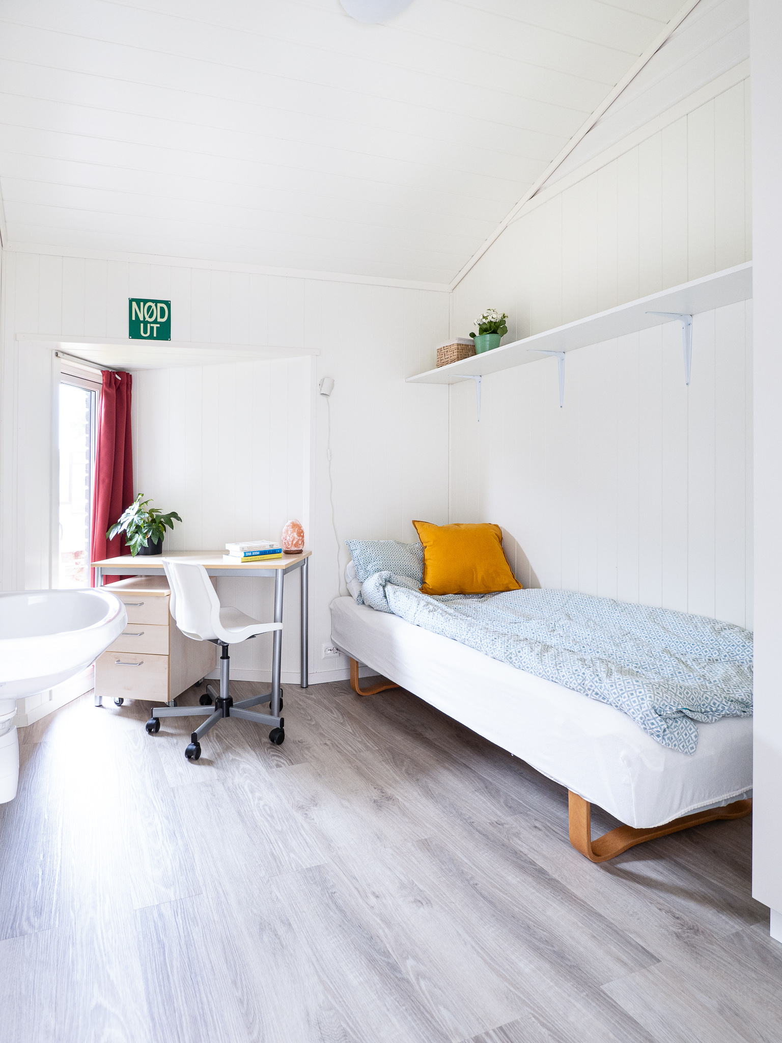 They rent out nine pavilions and an apartment, as well as some dormitories. All the housing units are gathered in a yard, in the middle of the school's park. All the housing units are located at ground level, and it is within walking distance to both the mountains, the fjord and the charming Eidsgata.