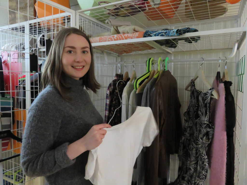 Olines hovedansvar i produksjonen av SKAM er statister og rekvisitter. Her henter hun klær til Eva i skapet hennes.