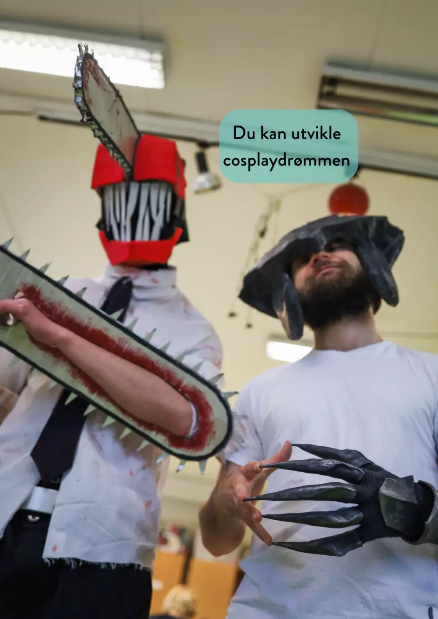 At the school, we have well-equipped workshops for cosplay, both for coarsework and fine work. We have ourown spray room, and in addition the school has its own photo studio which is available to everyone.
