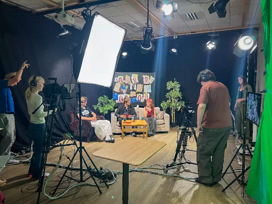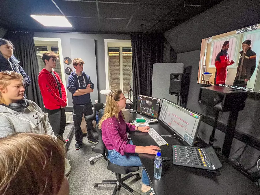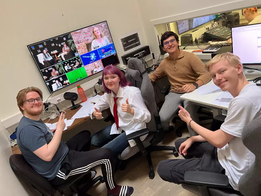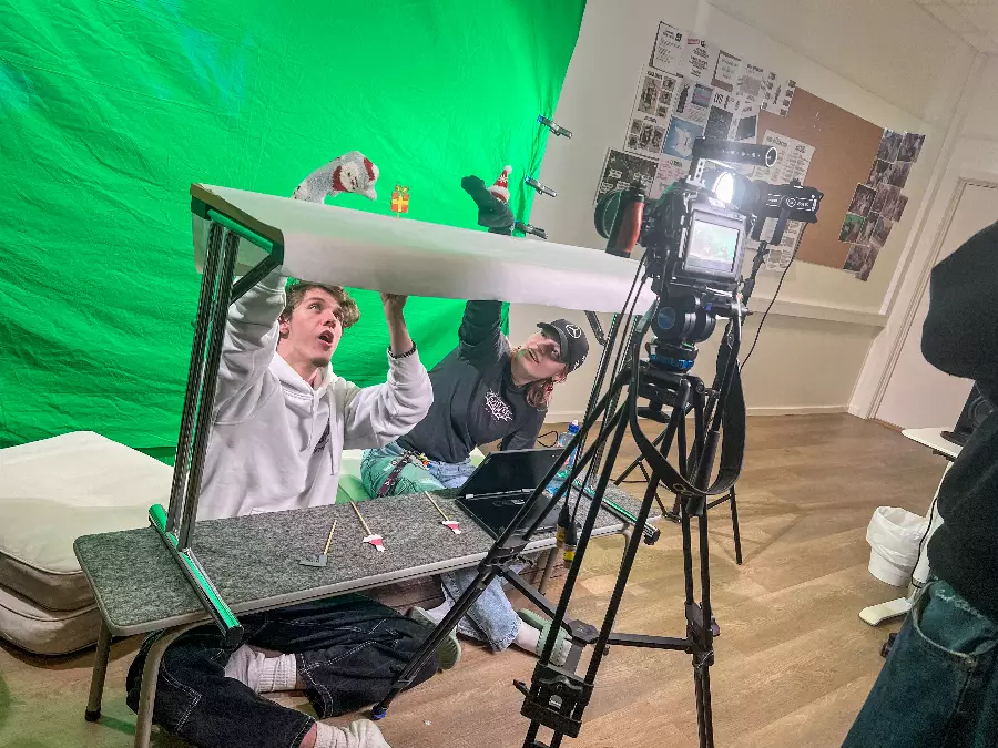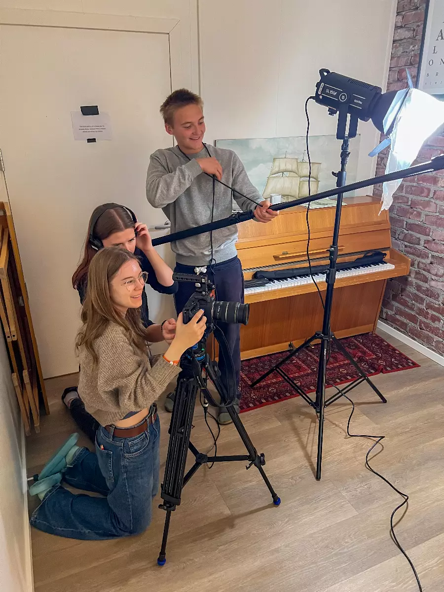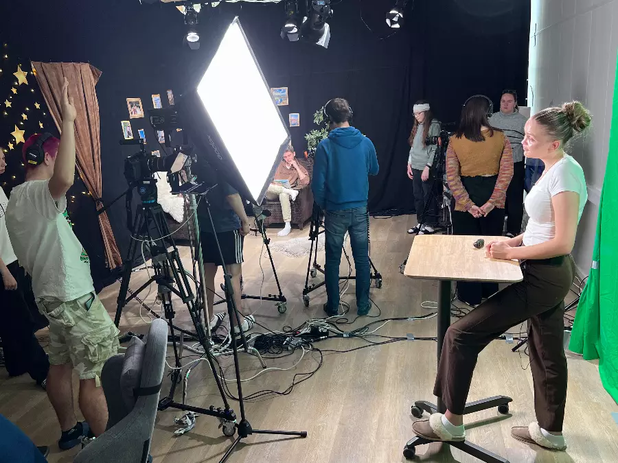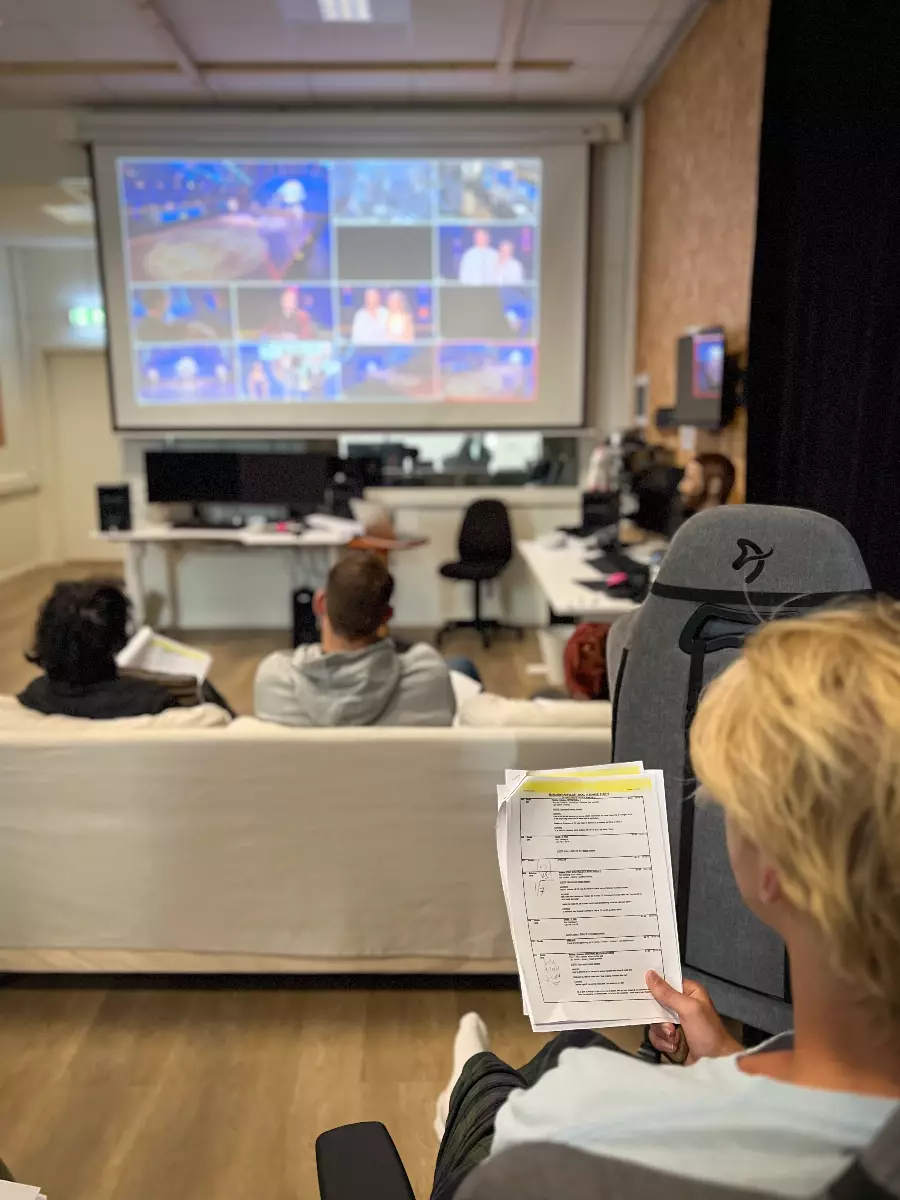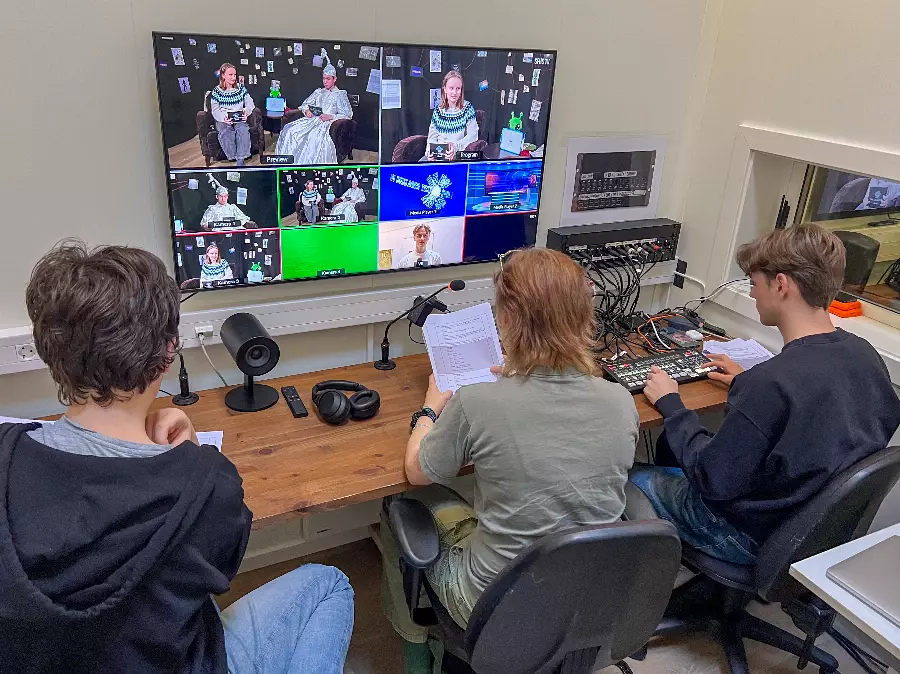 In our state-of-the-art studio, you learn what it takes to make a good film. Learn about scripts, camera technology, sound, lighting, studio and clips as well as live TV broadcasts. Social learning!