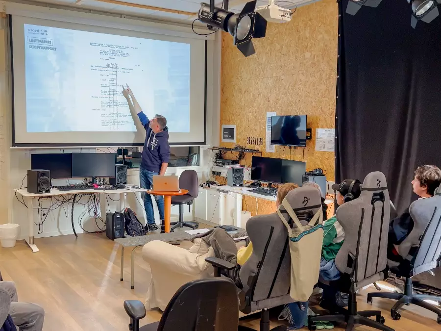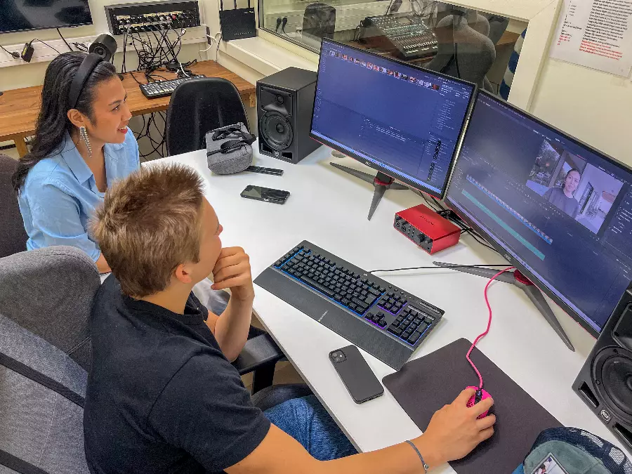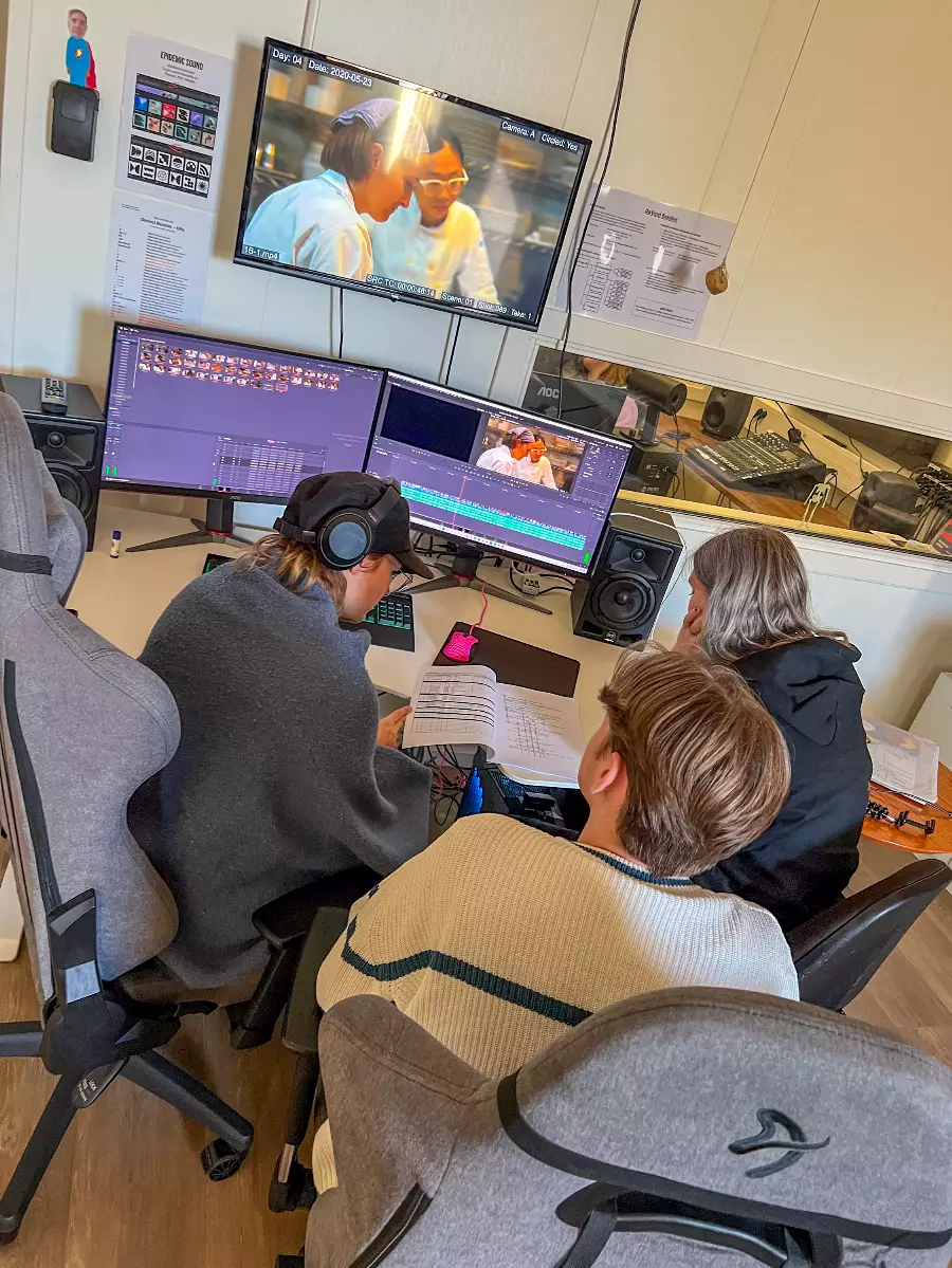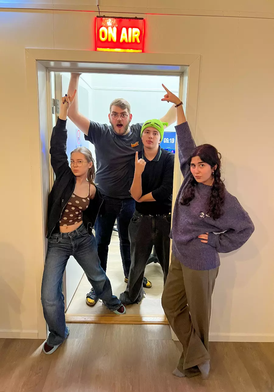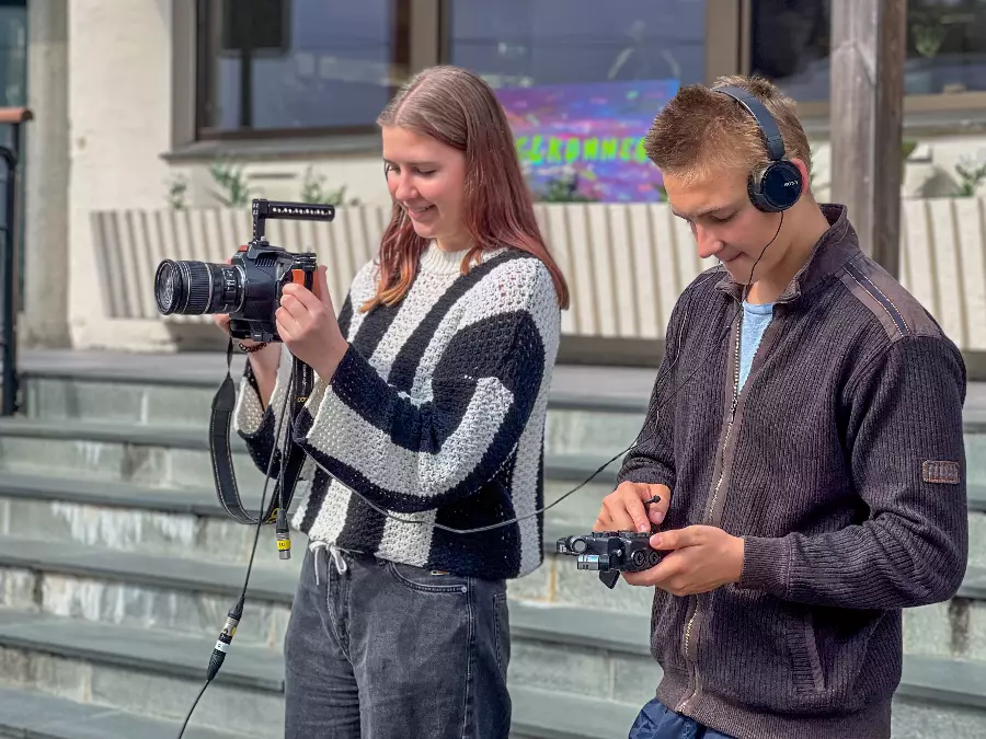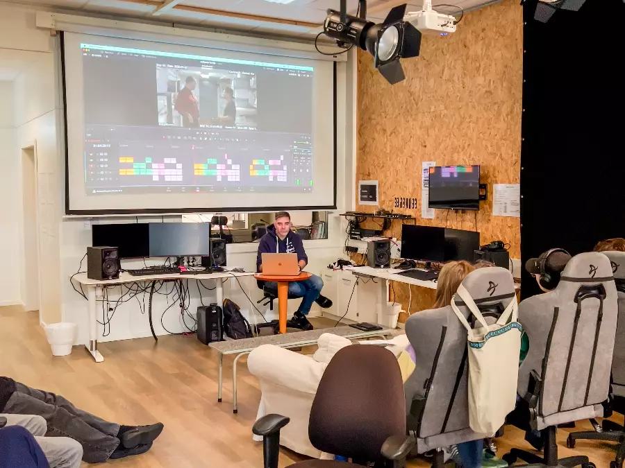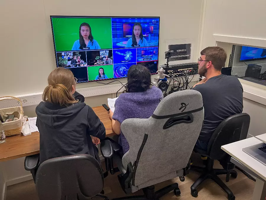 In our state-of-the-art studio, you learn what it takes to make a good film. Learn about scripts, camera technology, sound, lighting, studio and clips as well as live TV broadcasts. Social learning!