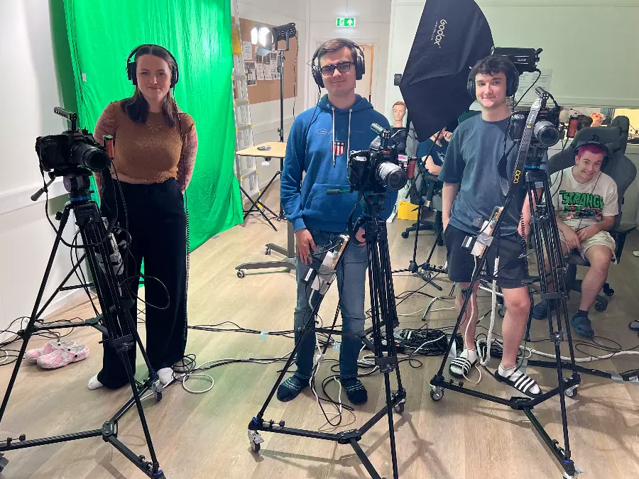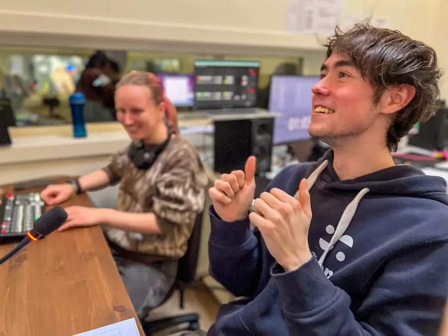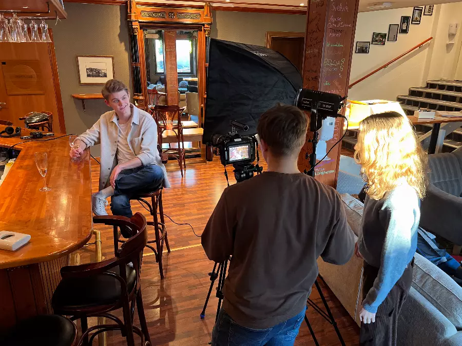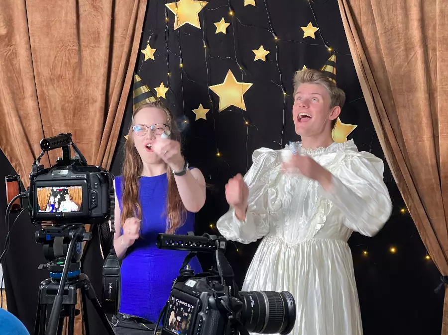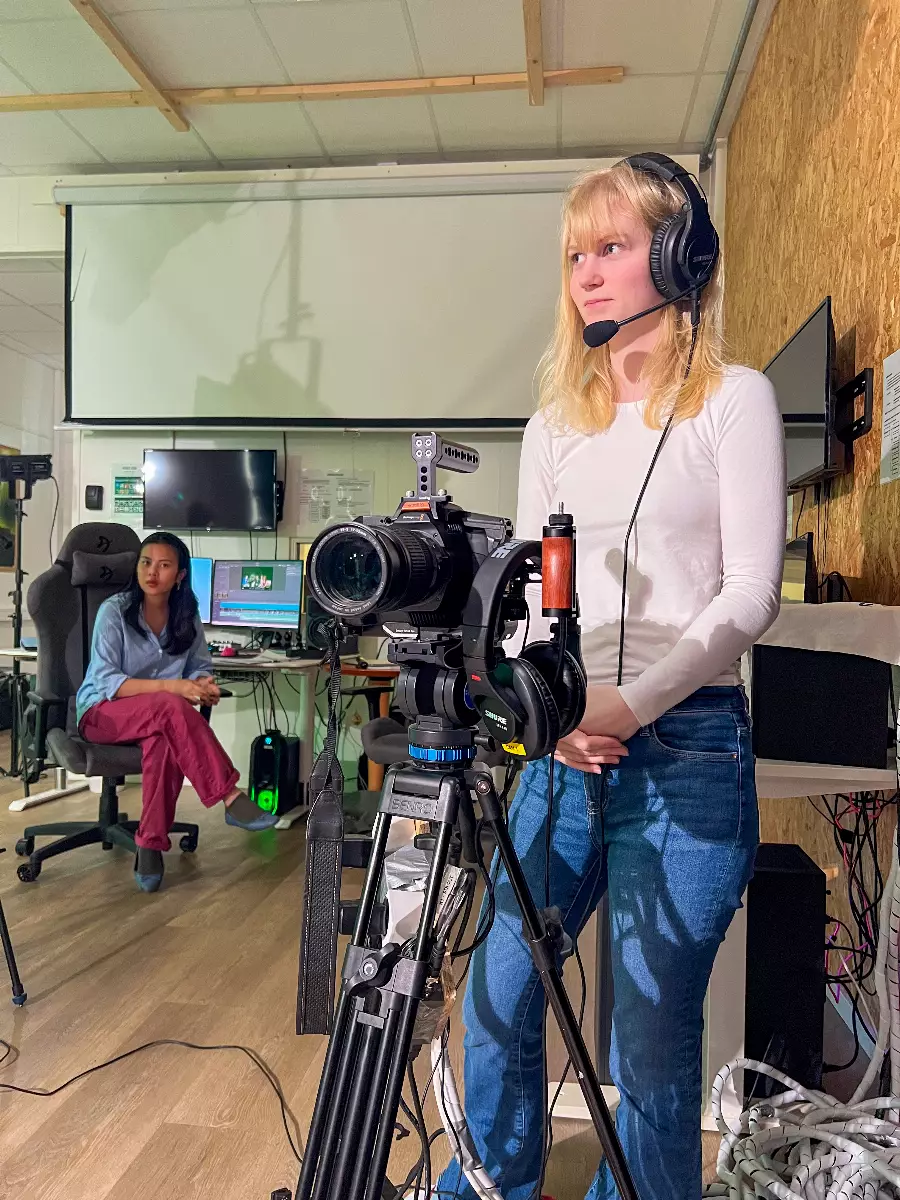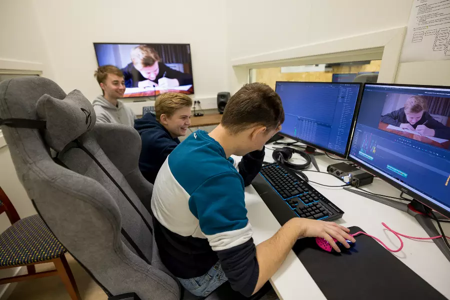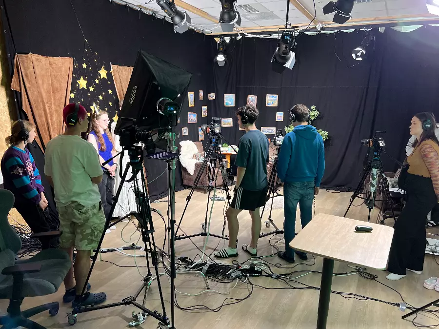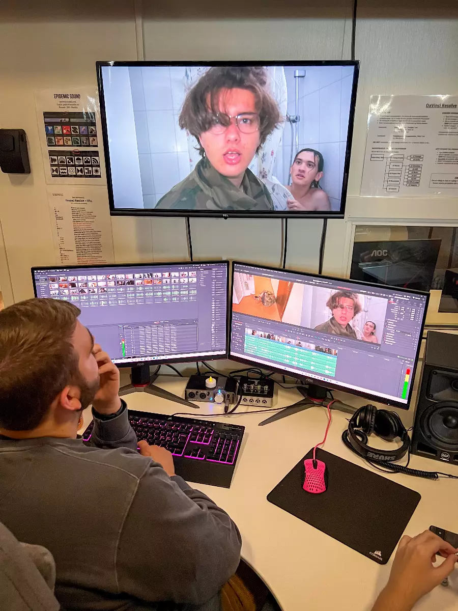 In our state-of-the-art studio, you learn what it takes to make a good film. Learn about scripts, camera technology, sound, lighting, studio and clips as well as live TV broadcasts. Social learning!