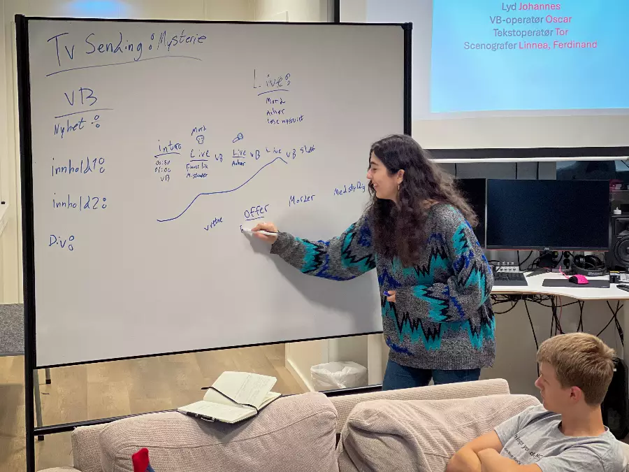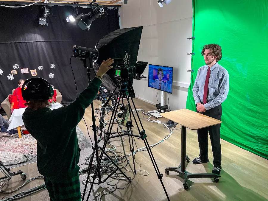 In addition to film production, we will also make our own live TV broadcasts. The whole class must work together for the result to be the best possible. The excitement when the red light is on and the broadcast goes live is unique.