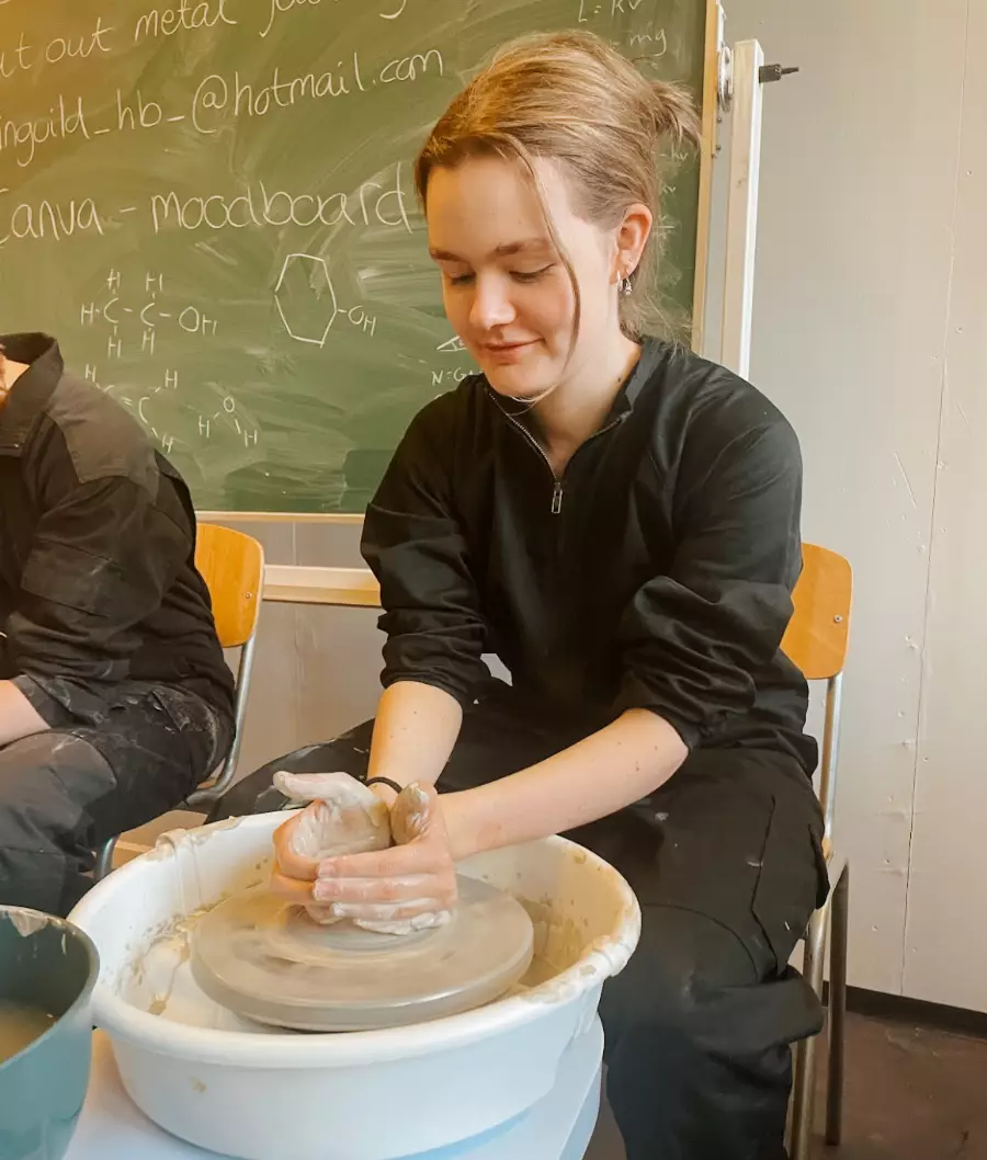 Du lærer både teknikk og materialforståelse, og får mye tid til å jobbe med egne ideer. Mange lager sine egne serviser, gaver til venner eller produkter som stilles ut eller selges.