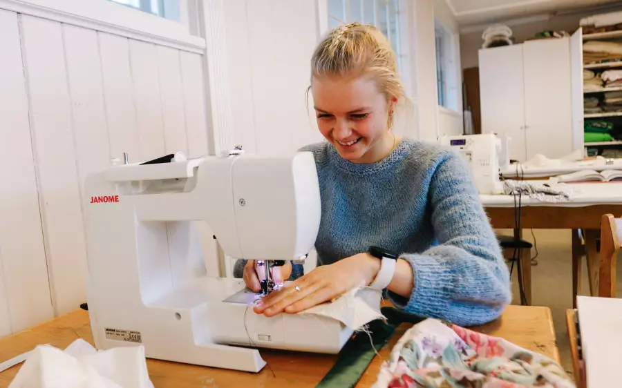 I tekstildelen får du jobbe med både gammelt og nytt. Du lærer å bruke symaskin, sy enkle plagg, reparere klær og gi nytt liv til tekstiler som ellers ville blitt kastet. Vi strikker, broderer, hekler og maler på stoff. Mange syr vesker, lager interiør eller prøver seg på egne klesplagg. Redesign er både kreativt, gøy og bærekraftig.
