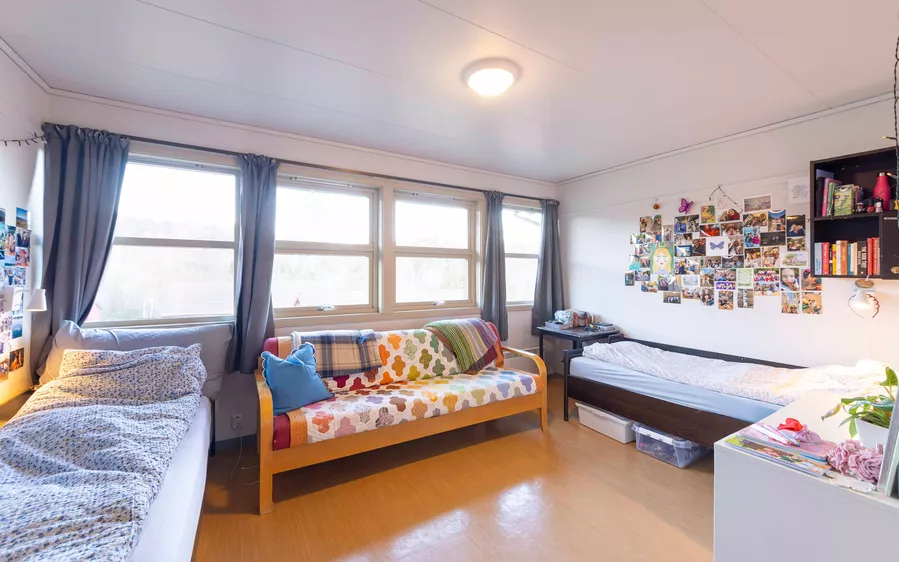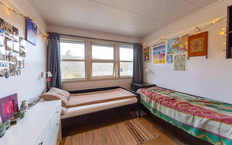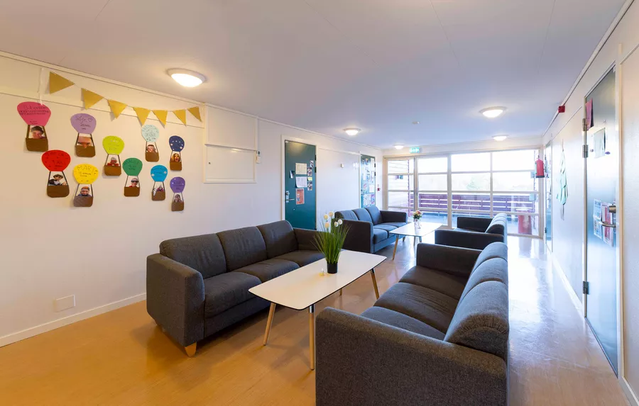 Hos oss bor du godt: Våre elever bor i åtte trivelige hus, der alle rom har eget bad. Her ser du hvordan det er å bo på Bømlo Folkehøgskule:
