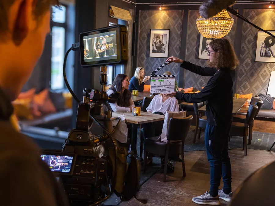 Du lærer teorien og du får praktisk erfaring i å utvikle og produsere dine egne fiksjonsfilmer i et godt samarbeide med de andre elevene.
