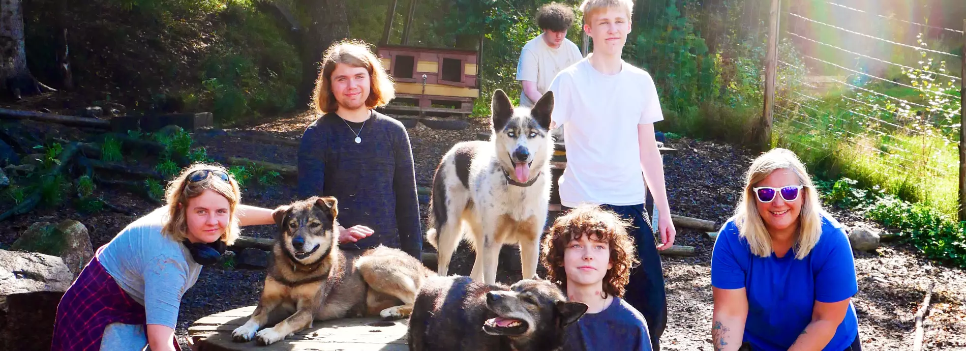 Gå tur med hundene til lærerne og folk i nærmiljøet som trenger hjelp med hundelufting.