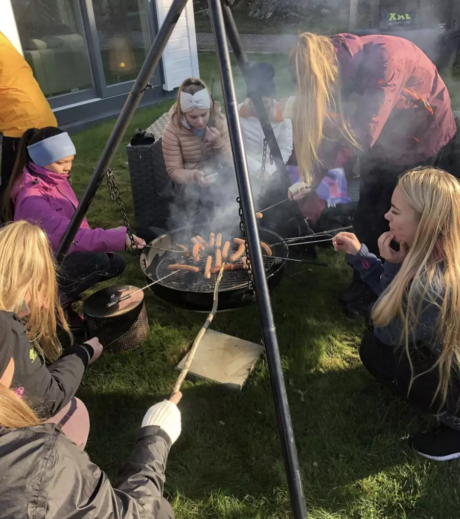 Bål, bålkos og mat er viktig når en er på tur. Vi bygger sjusteinsovn og lager både pizza, taco og andre retter, og maten smaker ekstra godt når den er selvlaget under åpen himmel!