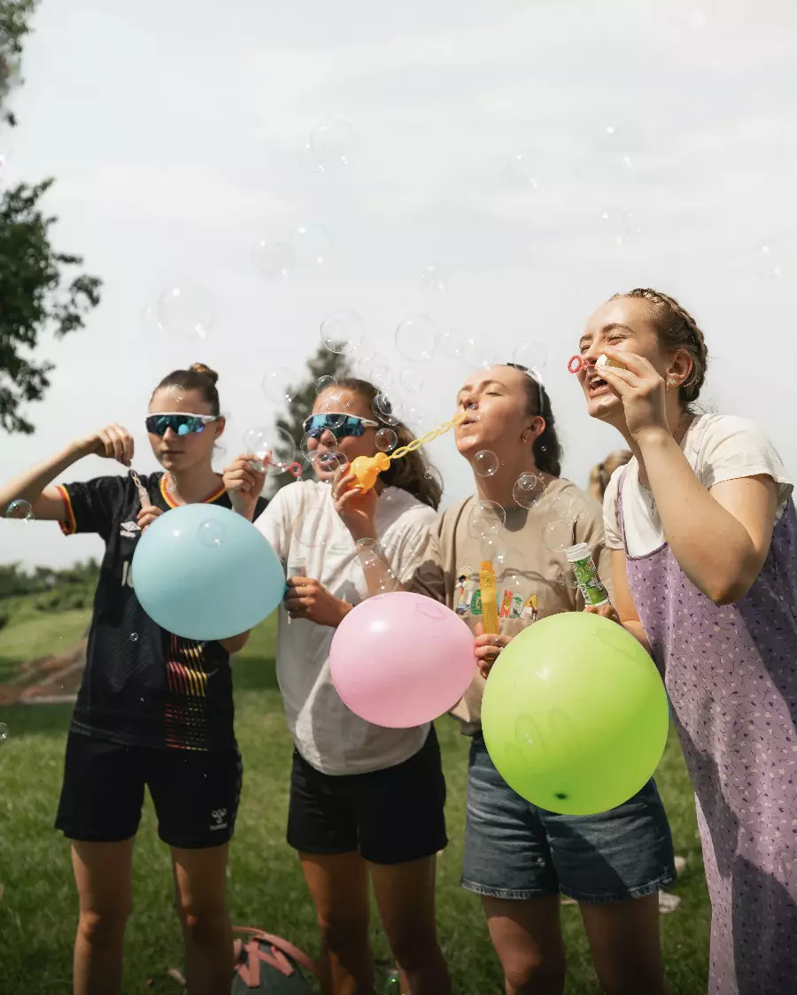 Vi spiller Ultimate Frisbee ute. En kjempe gøy sport som er enkel å lære og åpen for alle nivåer.