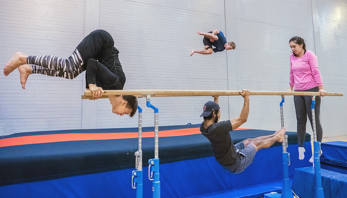 Fra rulle til flips, her kan du lære basics eller ta det til neste nivå i skolen flotte hoppegrop. Vi bruker Airfloor, trampett og matter på gulvet.