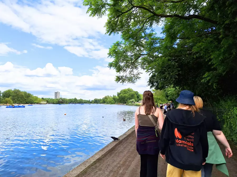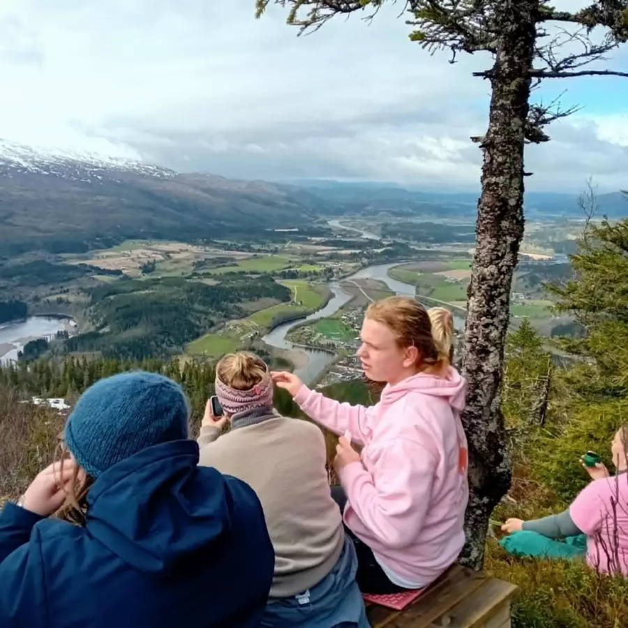 Vi fisker laks, går turer, spiller frisbeegolf og nyter naturen