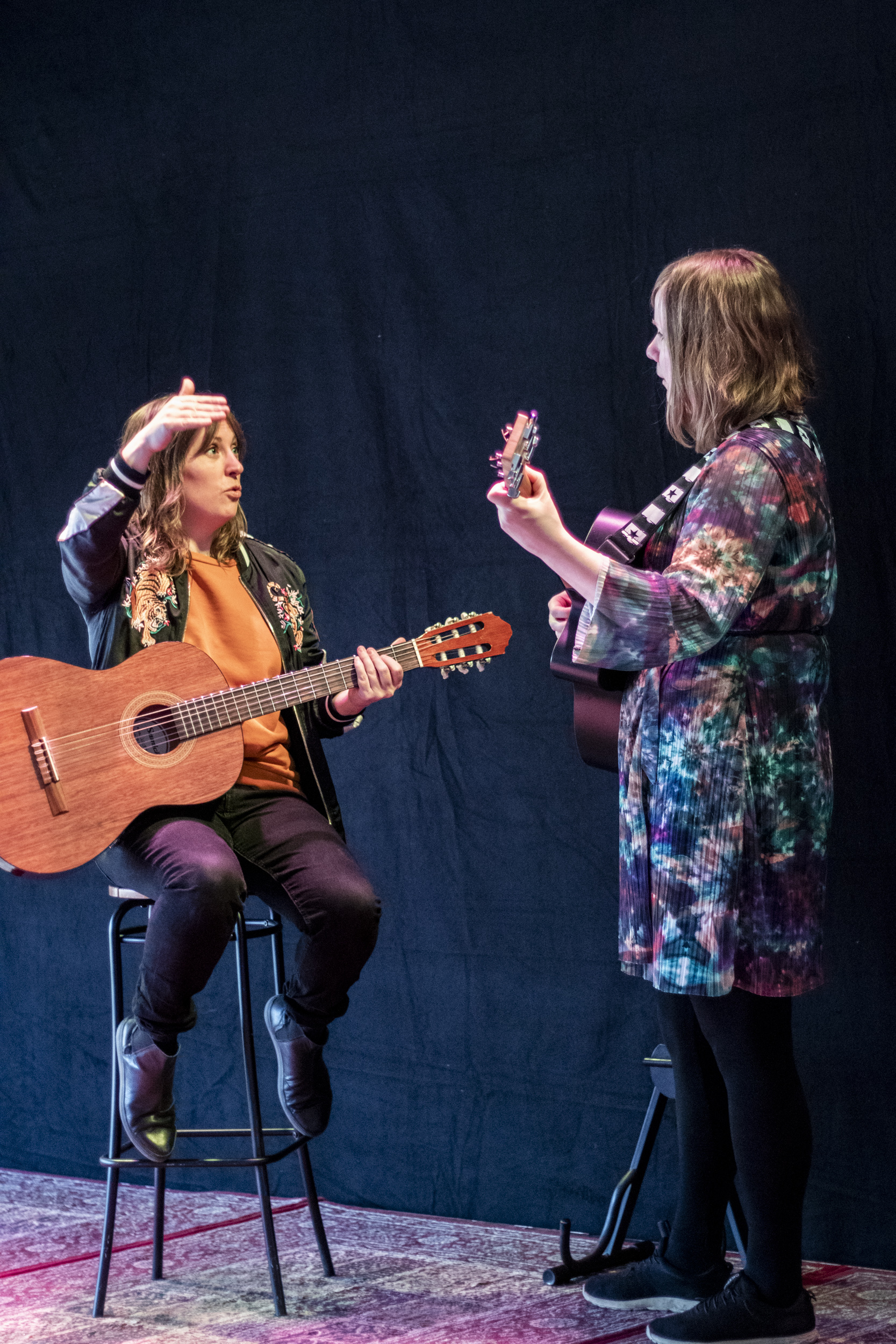 På Nordiska Visskolan får du prøve ulike verktøy innenfor sang, scenisk kommunikasjon, låtskriving og skapende musikk. Du tolker både egne og andres låter og lærer deg hvordan man med enkle grep kan berøre et publikum. Du får jevnlig individuell veiledning i sang/visetolking og gitar. Vi jobber også med samspill i grupper hvor vi utforsker mulighetene for å arrangere musikk på spennende og nye måter.
