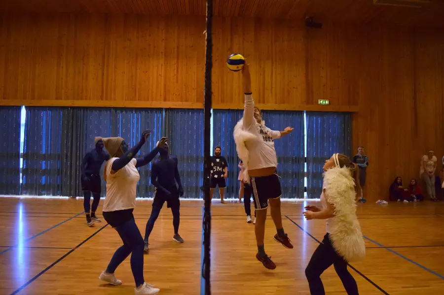 Vi spiller så mye som mulig og jobber med grunnteknikk og regler. Skolen er kjent for å ha gode volleyball lag og deltar i forskjellige turneringer. Vi spiller også mot andre skoler.