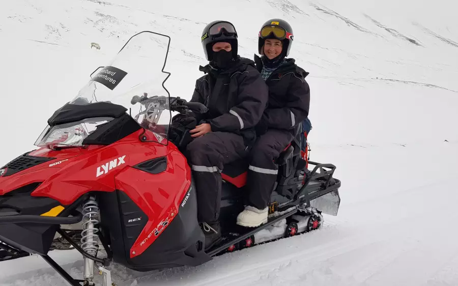 Linjen Villmark - vann og snø drar også til Svalbard som bader i midnattsol. Du kjører selv snøscooteren på snøscootersafari med guider. Turen går gjennom en magisk villmark med reinsdyr og fugleliv og en og annen isbjørn. Fantastik opplevelse!