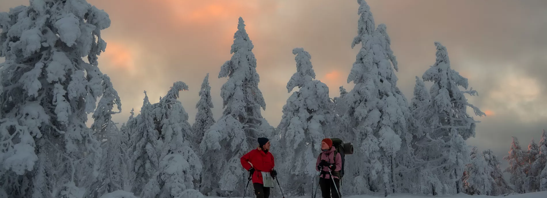 Hardangervidda venter på oss når snøen kommer. Lange vidder, sol, vandring og mestring mens vi gleder oss til middagen på primusen når sola går ned. I Alta og på Finnmarksvidda jakter vi nordlys - kanskje med hundespann? I løpet av året får vi teste våre ferdigheter med duo- og solo-døgn.