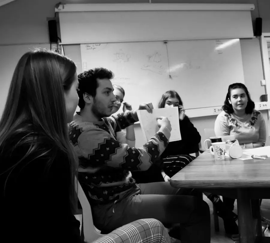 Et valgfag der vi logger ut av skjermene og inn i samtalen. I en rolig café-stemning med lys, te og kaffe snakker vi sammen om alt fra samfunn, politikk og kultur til filosofi, identitet og drømmer.