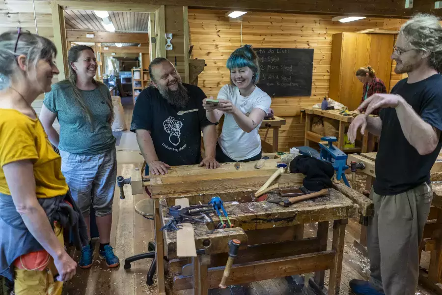 Vi jobber med fersk/rått trevirke og kan lage blant annet kopper, skjeer i alle fasonger, boller, fat, små figurer og det du måtte ha fantasi til.