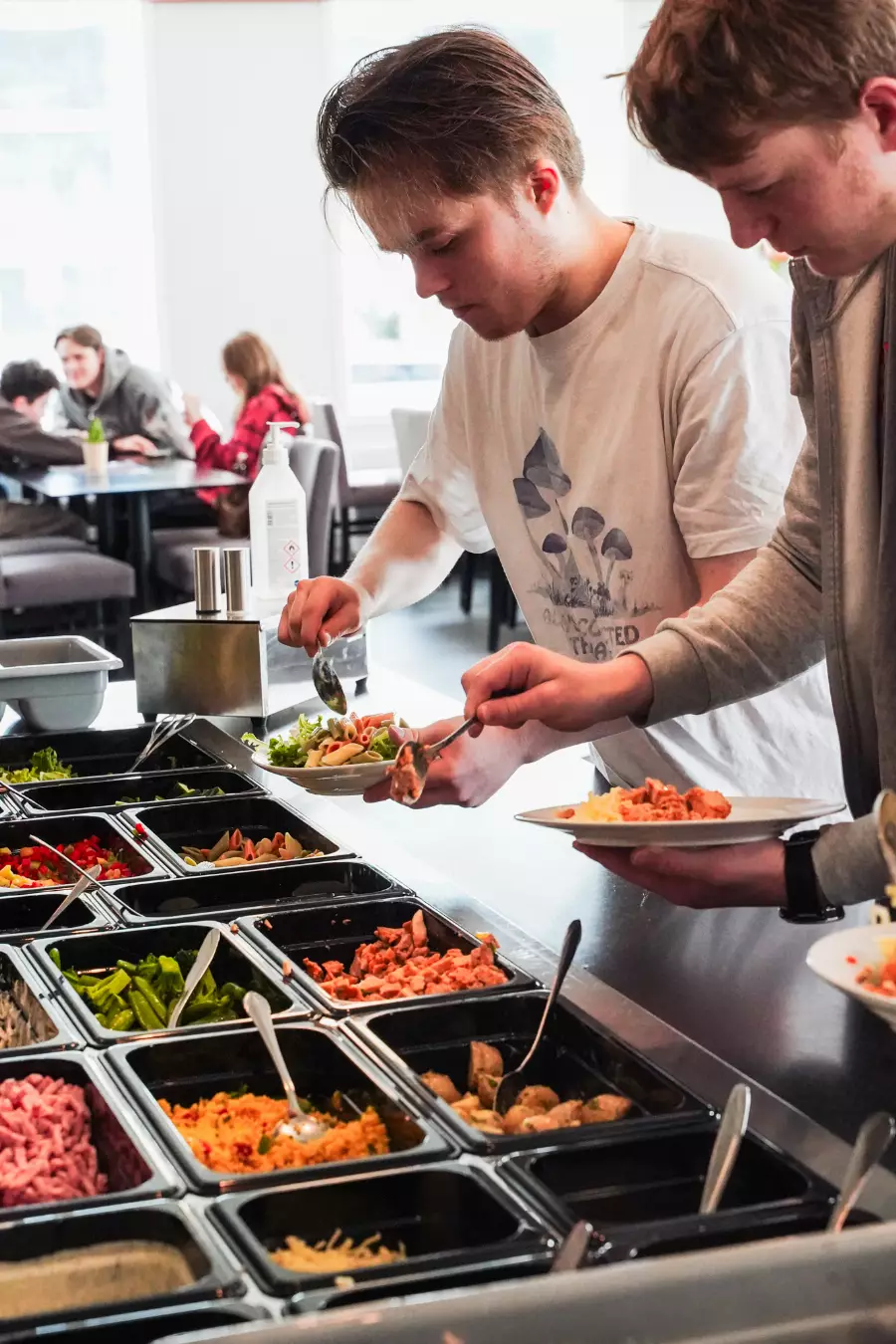 På skolen får du alle måltid, frokost, lunsj, middag og kvelds. Vi starter skoledagen med frokost kl.09.00! Undervisningen starter aldri før kl.09.45. Vi tror at ungdommer trenger å sove og vi vet at ikke alle er A-mennesker som starter dagen kl.07.00. Dette ønsker vi å ta på alvor ved å ikke starte før kl.09.45