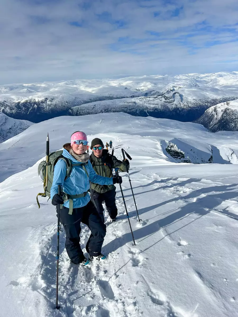 Sogndal er et vinterparadis! Skolen ligger midt i smørøyet for toppturer, med ikoniske topper bare 15–20 minutter unna. Kjører vi litt lenger, venter Jostedalen, Jotunheimen og Hurrungane – mulighetene er uendelige!