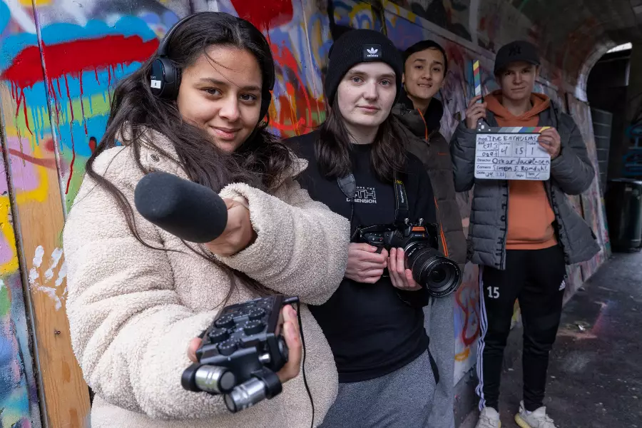 Hos oss står den gode forteljinga og samarbeid i fokus, og du vil få lære korleis ein nyttar ulike filmatiske verkemiddel for å lage den best moglege filmen.