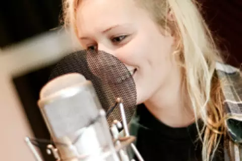 Skolen har eget podcaststudio. Her kan du få utfolde deg på begge sider av mikrofonen. Lag spennende og gøye podcaster med nye venner!