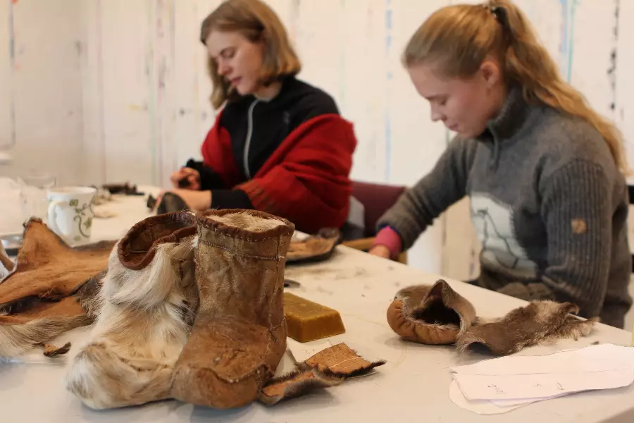 I tillegg til selve teknikkene lærer du også mye om materialenes egenskaper og historikk. Vi er også ute i naturen og sanker materialer. Vi jobber mye på middelaldergården Stiklastadir, og innemellom overnatter vi i langhuset.