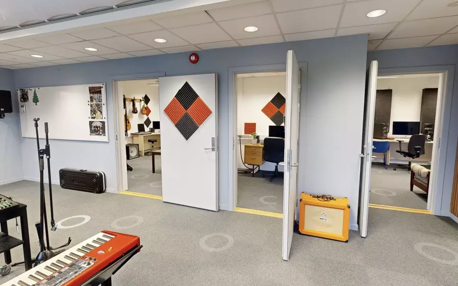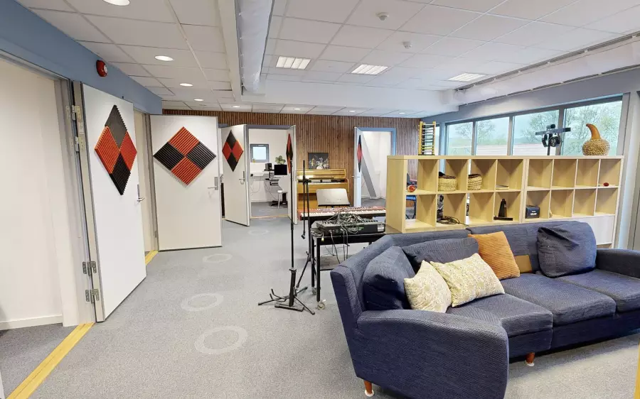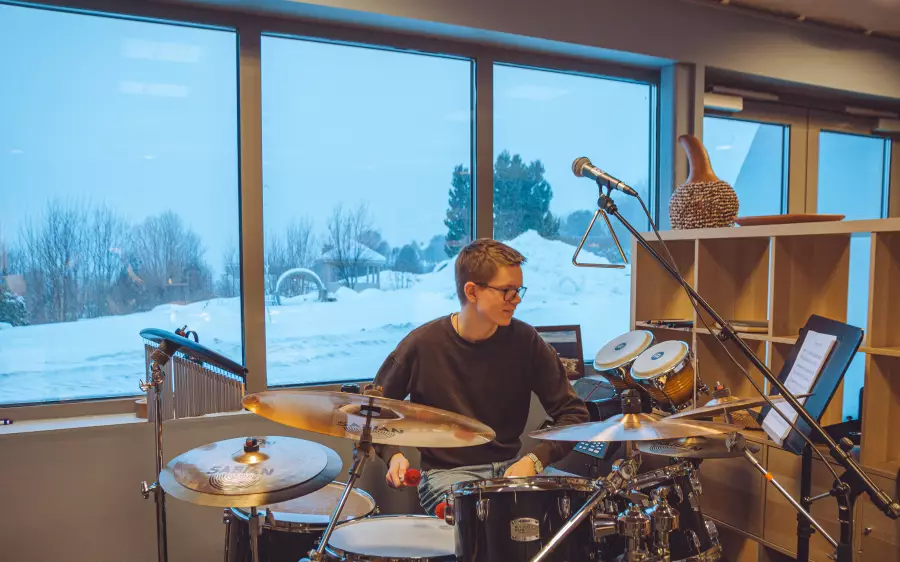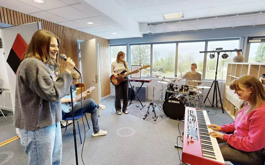 Du utfaldar deg i samspel med andre på instrument eller vokal innanfor ei tradisjonell pop/rock-besetning. Instrumenta er til fri bruk på fritida. Kanskje blir det ein mini-konsert på deg også?
