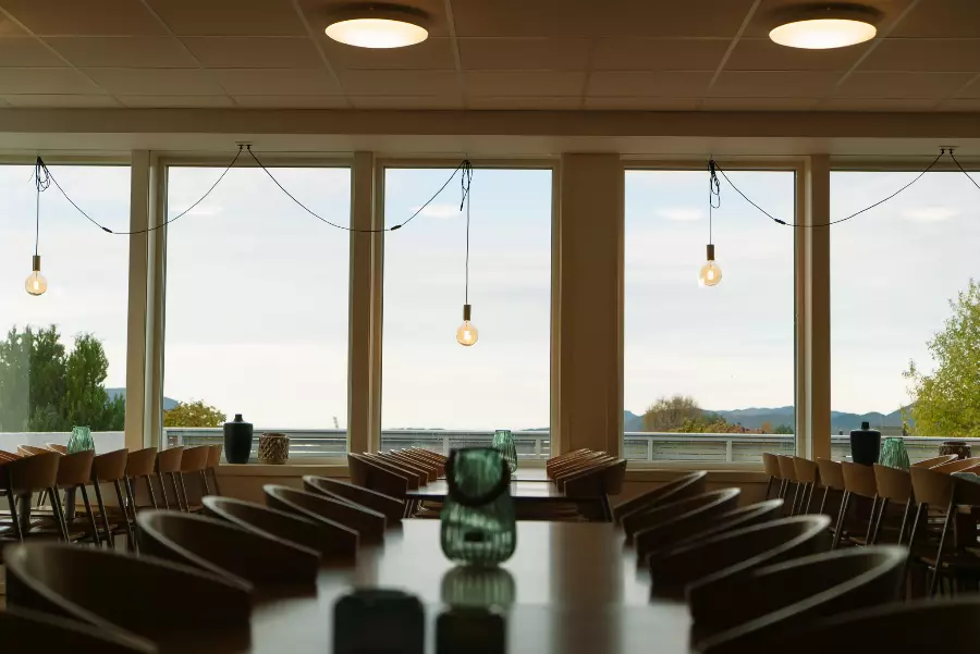 Sjekk inn på eit tidlegare hotell. Sjekk ut store elevrom med eige bad!
