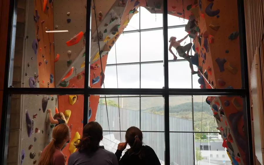 I ein nye klatrehall og buldrehall vil du jobbe med bevegelsesteknikk og balanse. Du klatrar ute på nokre av dei mange sportsfelta med fokus på leding. Læraren held sjølv eit skyhøgt nivå.