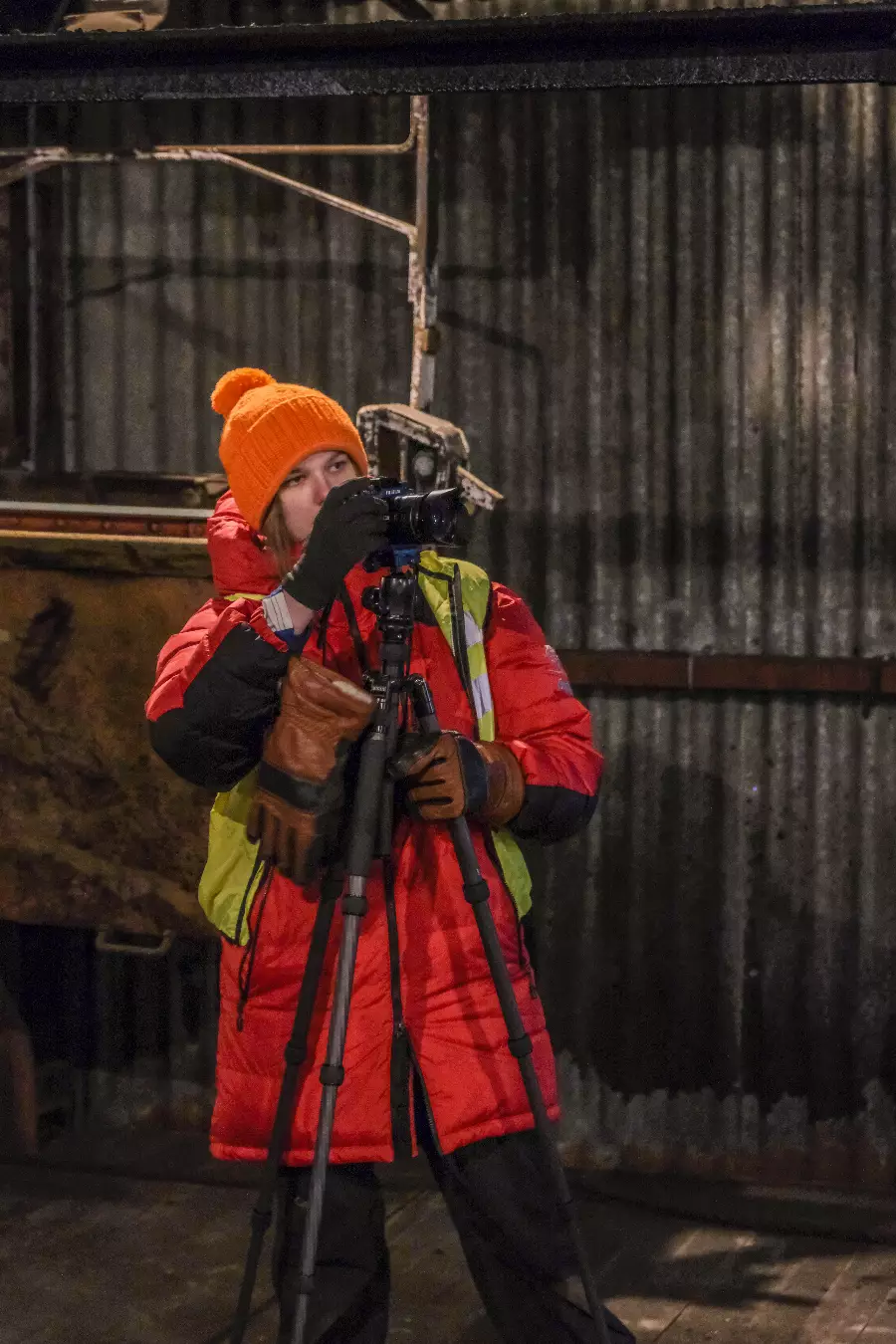 Du lærer å jobbe med kameraet under alle slags forhold - riktig bekledning for å kunne være ute over tid er også en viktig del av opplæringen.