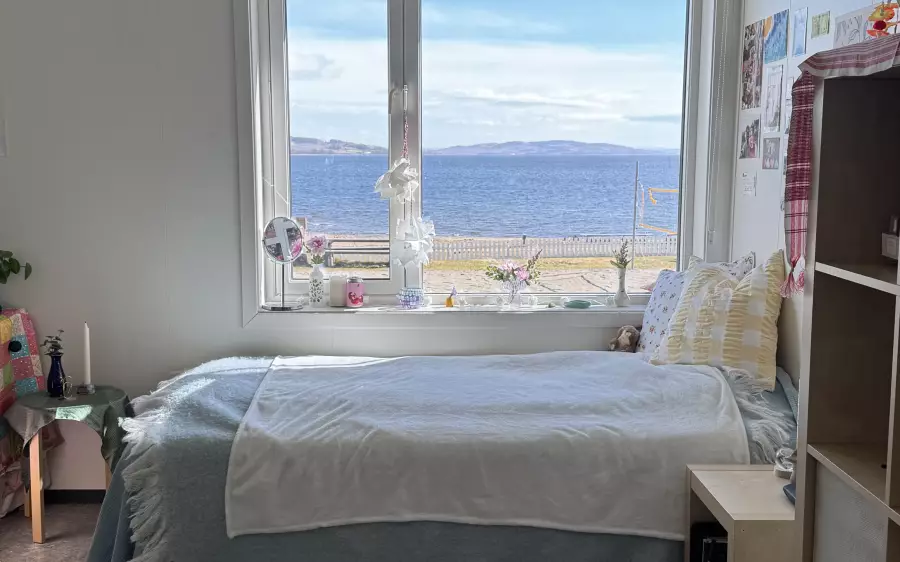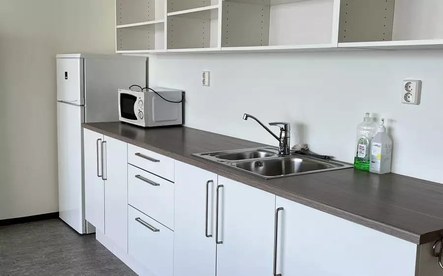 Du får et lyst og moderne rom med deilig seng og eget bad med dusj og toalett. Hvert internat har eget oppholdsrom med kjøkkenkrok, og et vaskerom for klesvask og renholdsutstyr.